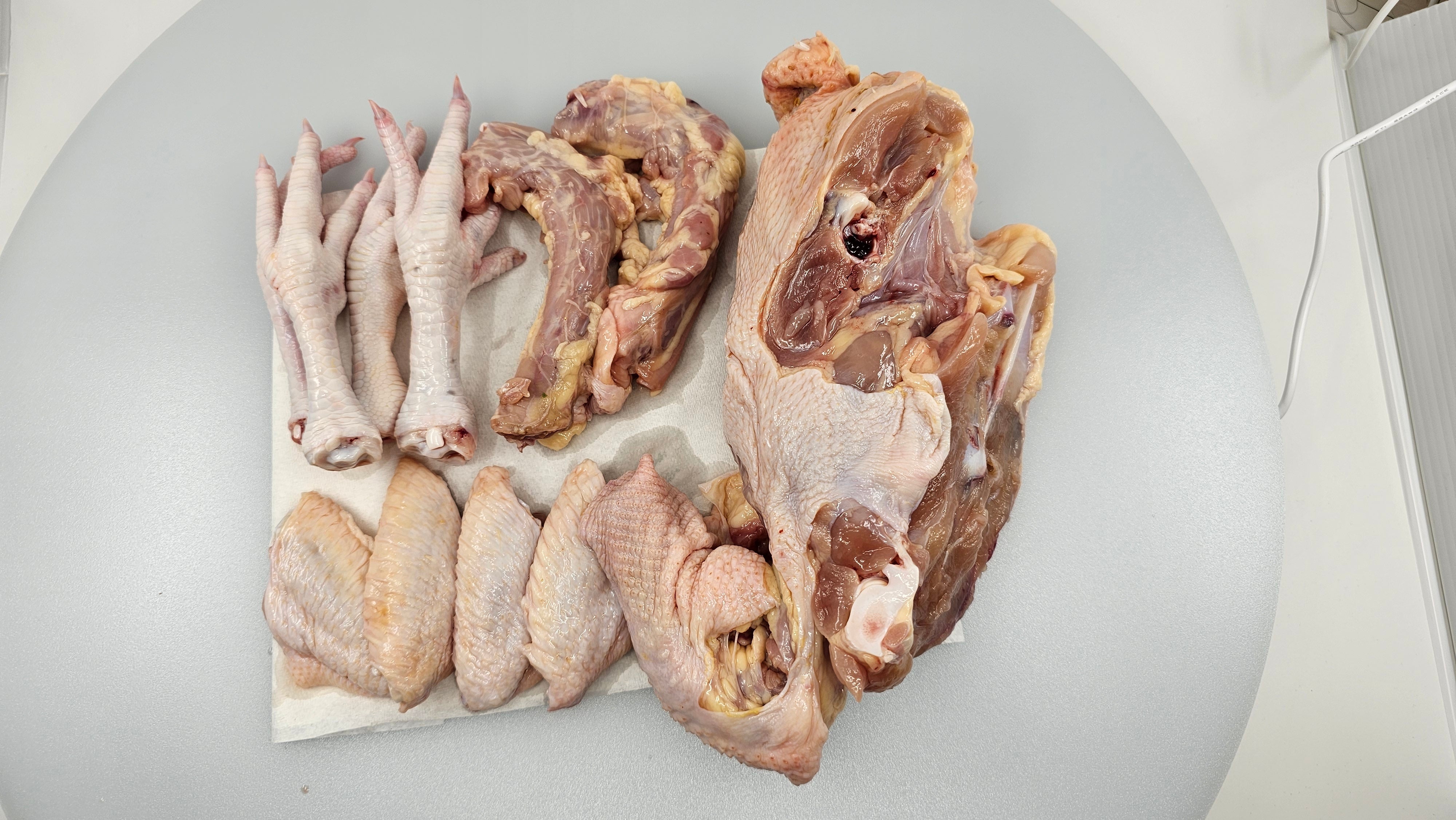 Includes: 1 body bone with neck 2 neck bones 4 wing drumettes 4 feet